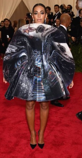 Anne Hathaway que look é esse? Achei estranhe e não entendi o capuz, mas é um Ralph Lauren, e a Solange Knowles sem comentários.