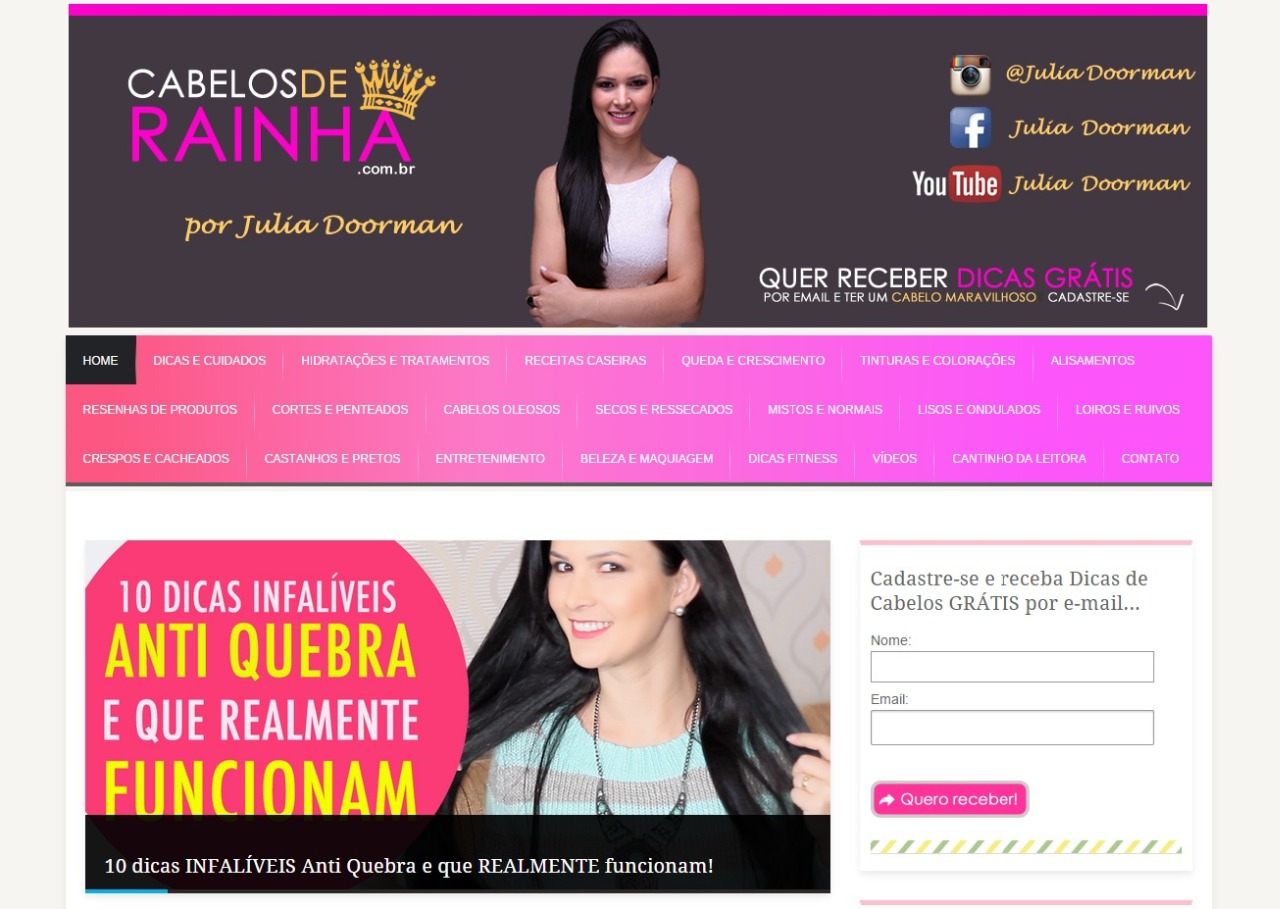 A Julia Doorman que assina o site "Cabelos de rainha", que o foco é cabelo, e tem dicas muuuito boas, tô sempre colocando em prática as dicas e os resultados são ótimos. Mas ela fala também de beleza e maquiagem.