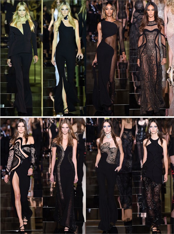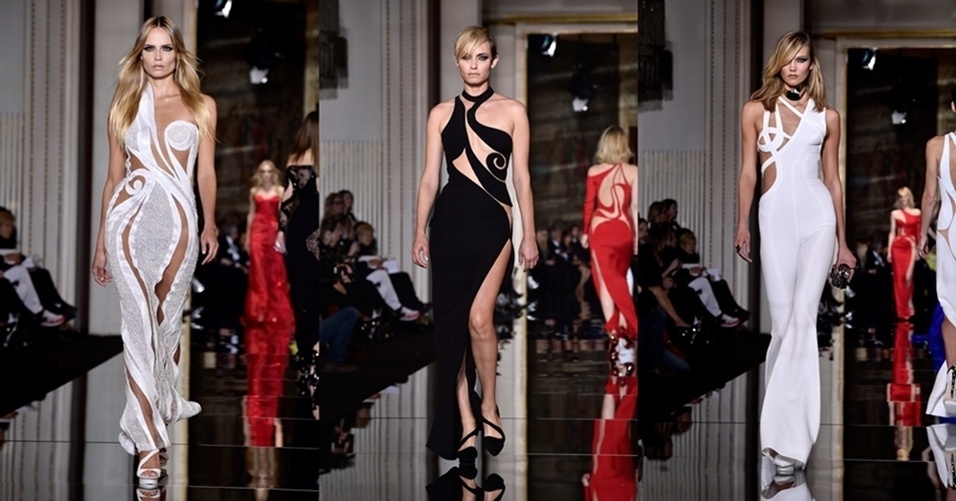 A marca italiana dirigida por Donatella Versace, irmã de seu fundador, foi a primeira a apresentar sua coleção primavera/verão 2015. Recheada de recortes, transparências e muita sensualidade. Donatella se inspirou na década de 1950.