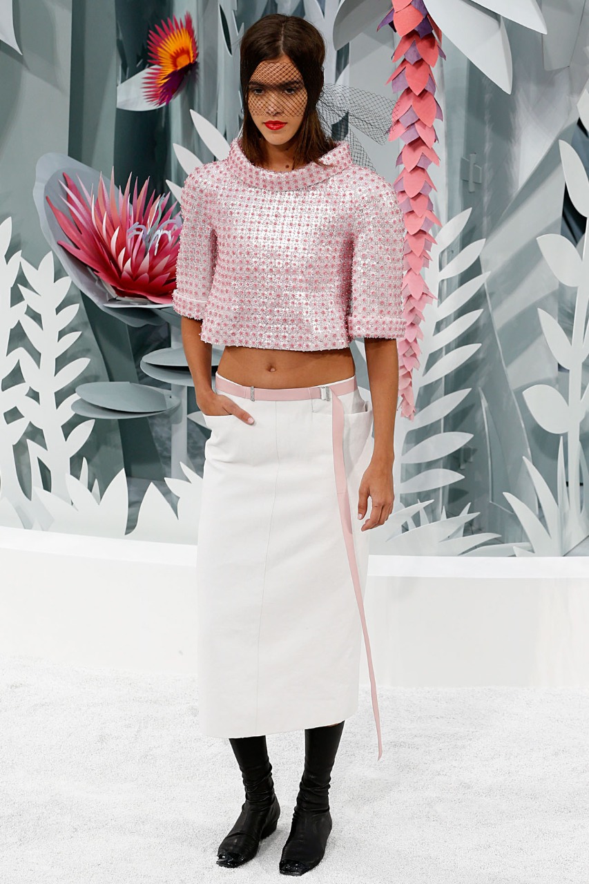 Agora a Chanel, muito amor!!! A primavera anunciada na passarela, com uma cartela de cores delicada que remete ao principal simbolo da primavera, as flores!!! O rosa suave venho com tudo, a tranparência também muito presente, trazendo leveza e fluides para a coleção. E muitas saias (só saias e vestidos), rodadas, com cintura marcada, trazendo muita feminilidade!!!!